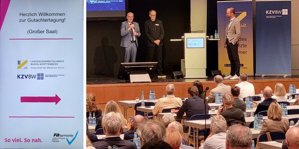 Gut gelaunt und erwartungsvoll trafen sich am Samstag, 27. September rund 250 zahnärztliche Gutachterinnen, Gutachter und Mitglieder der Gutachterkommissionen für Fragen zahnärztlicher Haftung aus ganz Baden-Württemberg in Filderstadt. Anlass war die gemeinsame Gutachtertagung, die von KZV und LZK BW abwechselnd in enger Zusammenarbeit ausgerichtet wird. Dr. Bert Bauder, Gutachterreferent der LZK BW, und Dr. Georg Bach, Gutachterreferent der KZV BW, begrüßten die ehrenamtlich Tätigen.
